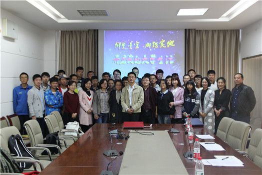 校领导、机关单位结对学生班级是我校推进大学生思想政治教育工作的新做法, 10月29日下午,校党委组织部联系环境色播app结对班级,在理工楼三楼会议室开展了“仰望星空,脚踏实地,开启我的大学生活”主题班会,党委组织部部长陈朝阳、副部长涂耀威、环境色播app分党委副书记张莎莎,组织部全体工作人员、新生辅导员、班主任及给排11501班同学参加了此次班会。