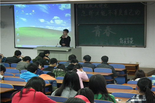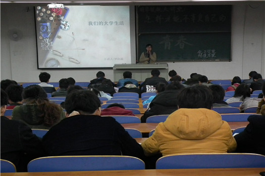 本次讲座的主讲人为爱心志愿者程志强、学霸才女罗诗露和瓷娃娃团队发起人熬睿。三名高年级优秀学长学姐就如何更好地开展和规划大学生活,与15级新生进行了热烈交流。会上,程志强学长为大家讲述了他去贵州永兴希望小学义务支教的故事,他提出“青春要为他人,讲奉献”;罗诗露学姐则通过自己参加全国挑战杯大赛的经历,提倡大家“为青春做自己喜欢做的事”,熬睿学长着重强调了把握当下的重要性,他希望同学们珍惜时光、开拓视野,给青春一个明确的方向。