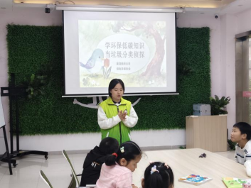 活动始,志愿者袁方灿用视听结合的方法,将小朋友们带入通俗易懂的环保世界。从“环保与每个人息息相关”到“从垃圾分类这些小事做起”,结合生活案例介绍环保知识,让每一位小朋友都能理解“日积月累”这个词在环保领域的意义。