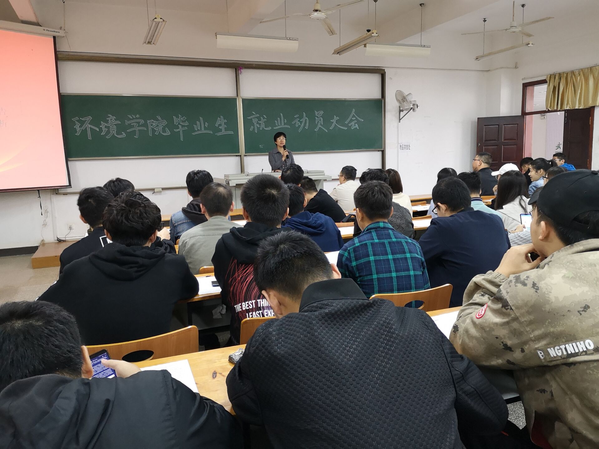 为提高毕业生对就业形势的认识,引导学生转变角色,调整心态,科学规划考研、求职生涯,环境工程色播app于10月16日上午在06-210教室召开2019届毕业生考研就业动员大会,色播app党委书记谢晓萍、院长夏东升、副书记刘园美、15级辅导员姚瑶及全体毕业生参加了此次大会。