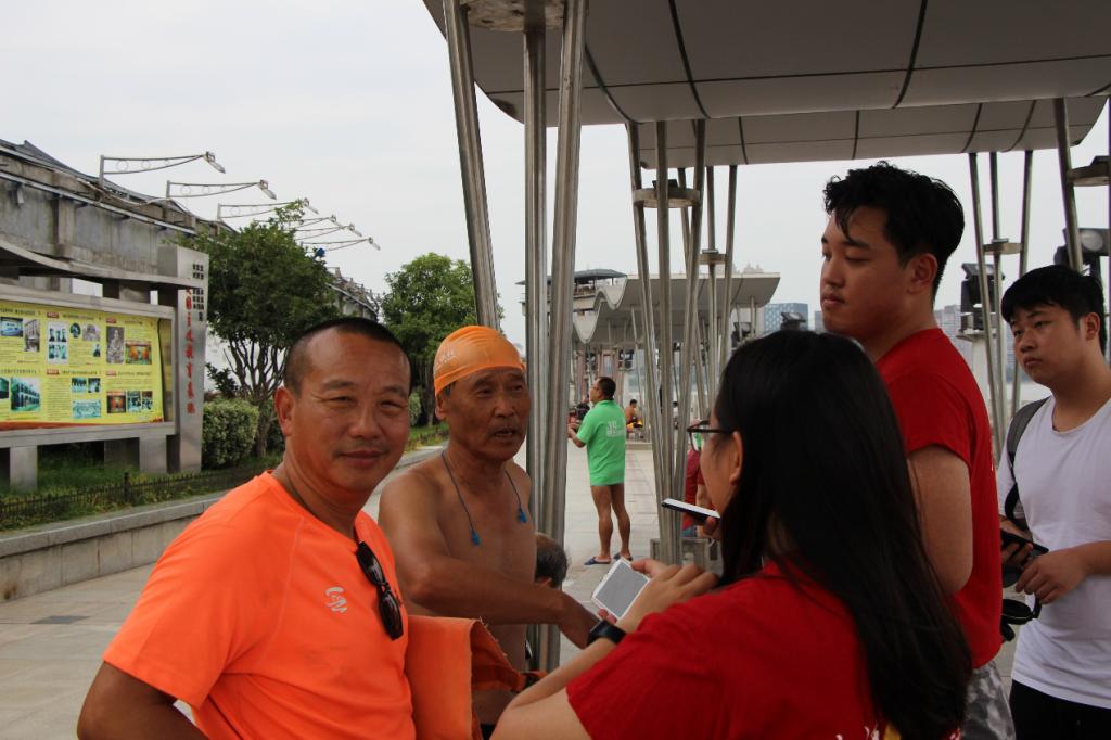 在长江抗洪纪念地,调研小组采访了冬泳队成员。据了解,队长也曾参与过抗洪,他表示:“当年,水已经超过了防洪墙,场面非常紧张,江泽民和温家宝也多次现场指挥,大家都自发前往抗洪一线,团结一心,不怕苦也不怕累,一心只想保护好家园。”在采访过程中,碰到一位当年亲身经历抗洪的老先生。从他的描述中,了解到:当年的洪水直接冲过了三级防线,沿路都堆满了沙袋,大家自发参与巡逻和抢修。洪水来临之时,因为当时的宣传媒体并没有制造恐慌,所以身在城市中心的人们并没有什么担心或紧张。在政府的有序管理下,物价稳定,物资充沛,这也体现出我们党和政府的力量。老先生指着前方说:“由于龙王庙地处长江和汉江交汇之处,洪水来势最凶,因而是1998年抗洪最惊险的地方。”