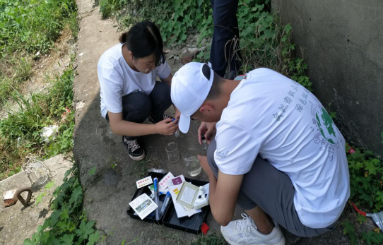 随后,实践团队对闸东社区金水河段的水质进行了取样检测和河道垃圾清理,水样测试结果显示样品区域总体水体情况良好,团队队员还深入到周边社区对居民和村民分别开展了问卷调查,了解居民(村民)对河湖长制实施的意见和建议。