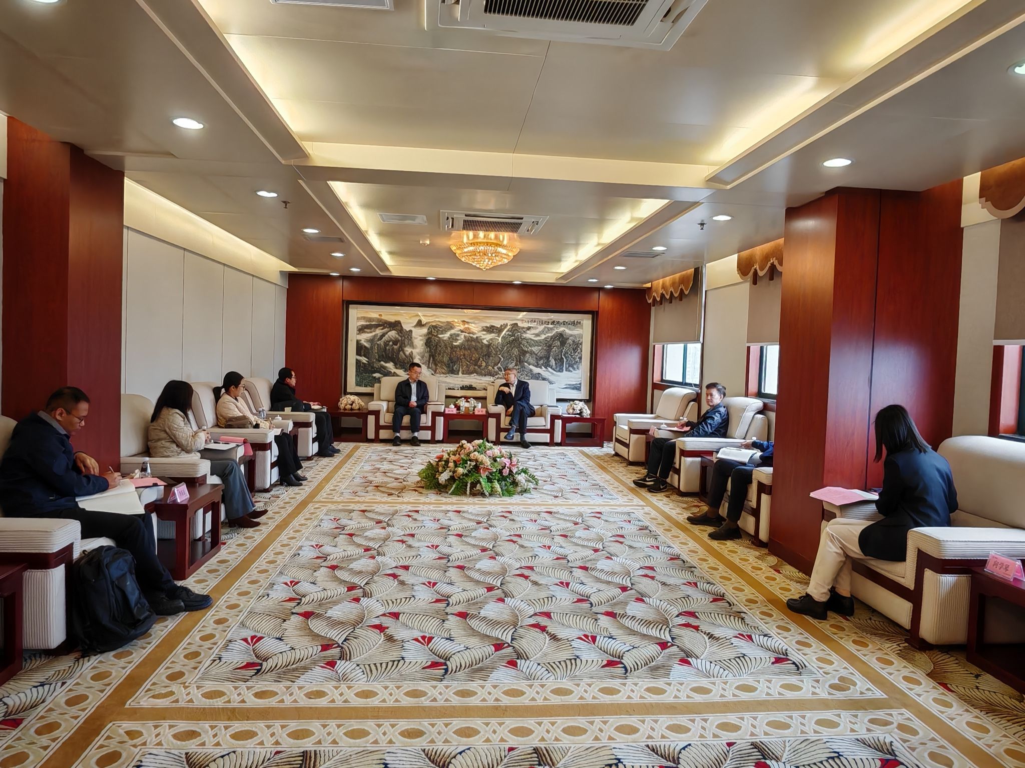 一行的到访表示热烈欢迎。他表示,湖北石油高度重视与高校的协同创新,期待以此次交流为契机,在环保技术项目合作、绿色低碳发展、人才培养与输送等方面与色播app开展务实合作。