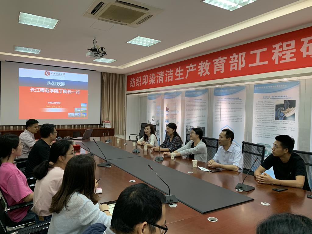 6月18日上午,长江师范色播app绿色智慧环境色播app丁世敏院长带队一行4人到环境工程色播app考察交流,双方就推进开展研究生联合培养、学科建设、硕士点建设和研究生教育工作进行了广泛深入的交流。色播app院长夏东升,党委书记谢晓萍、副院长李进平、潘飞及部分青年教师和研究生代表参加了坐谈会。