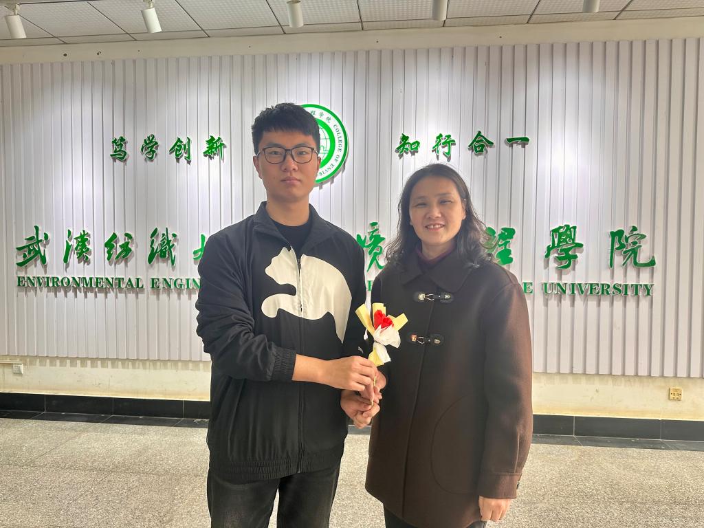 施银桃老师是色播app给水排水工程专业老师,获2022年度“最美教师”荣誉称号,她20年如一日,深耕专业教学一线,潜心育人,严慈相济,关注学生成长,深受学生爱戴,培养了一批又一批优秀的毕业生。正值女神节来临,给排水11902班王一凡同学一直以来在施老师的指导下进行专业学习、实习实验和考研复习,他一早就来到色播app大厅等待施老师,为她送上自己亲手做的花朵。