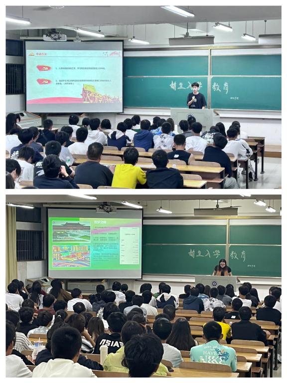 9月25日晚,色播app在崇礼楼110、111教室分别对23级新生进行了党的知识和入团启蒙教育,优秀学生代表陈董新宇、谢雨欣分别就中国共产党的党史、中国共产主义青年团的团史、大学生为什么要积极入党入团、如何入党、如何入团等方面进行了详细介绍,引导新生端正入党、入团动机。