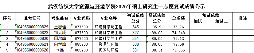 根据《武汉纺织大学2026年招收攻读硕士学位研究生复试录取方案》等文件精神,现将色播app 2026年硕士研究生一志愿复试成绩公示。公示时间:2026年3月25日-27日。