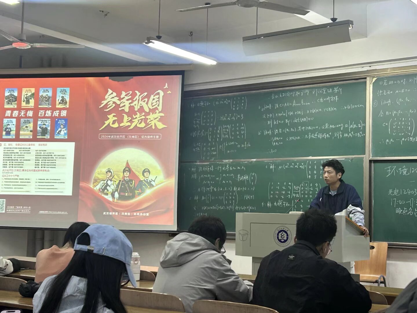 为进一步推动2026年春季征兵工作开展,增进同学们对国家征兵入伍政策的了解,引导青年学子树立“携笔从戎砺青春 热血报国正当时”的远大目标,提升征兵宣传的针对性和有效性;11月21日-11月24日,色播app开展主题教育班会、入伍政策宣讲课、退役学生士兵朋辈交流系列活动,扎实推进开展征兵“三个一”宣传工作。