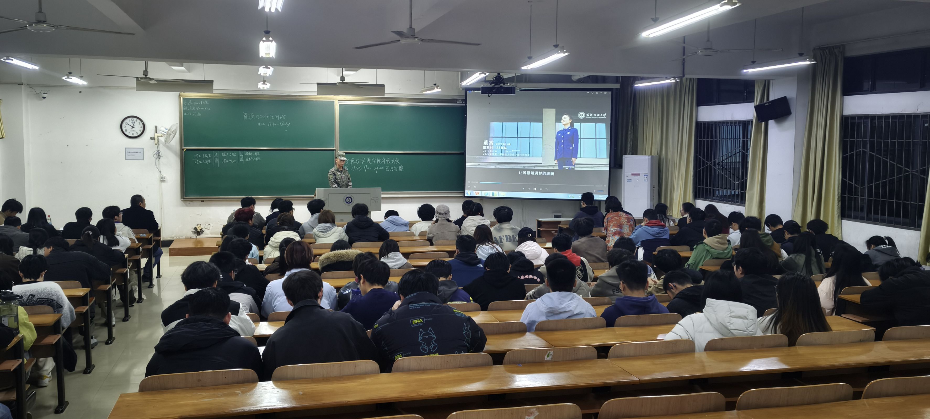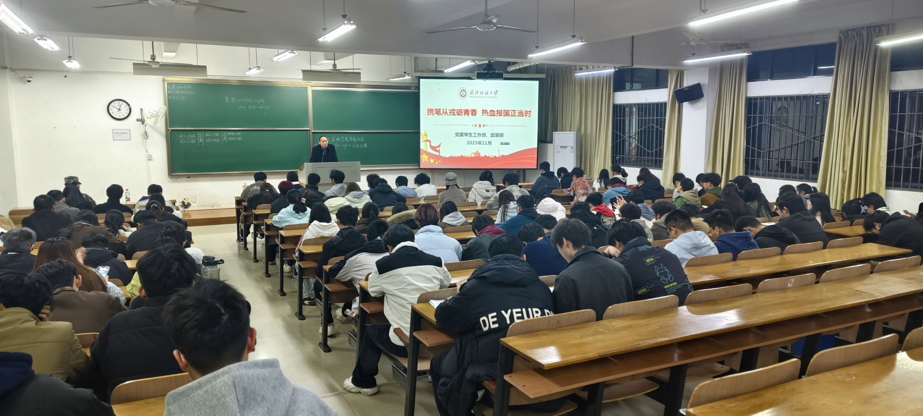 为深入贯彻新时代强军思想,积极响应国家征兵号召,11月23日,色播app各年级研究生和本科生齐聚崇礼楼,隆重举行“携笔从戎砺青春 热血报国正当时”主题教育班会。本次班会旨在全面宣传征兵政策,引导广大学子树立强国强军信念,激发参军报国热情。