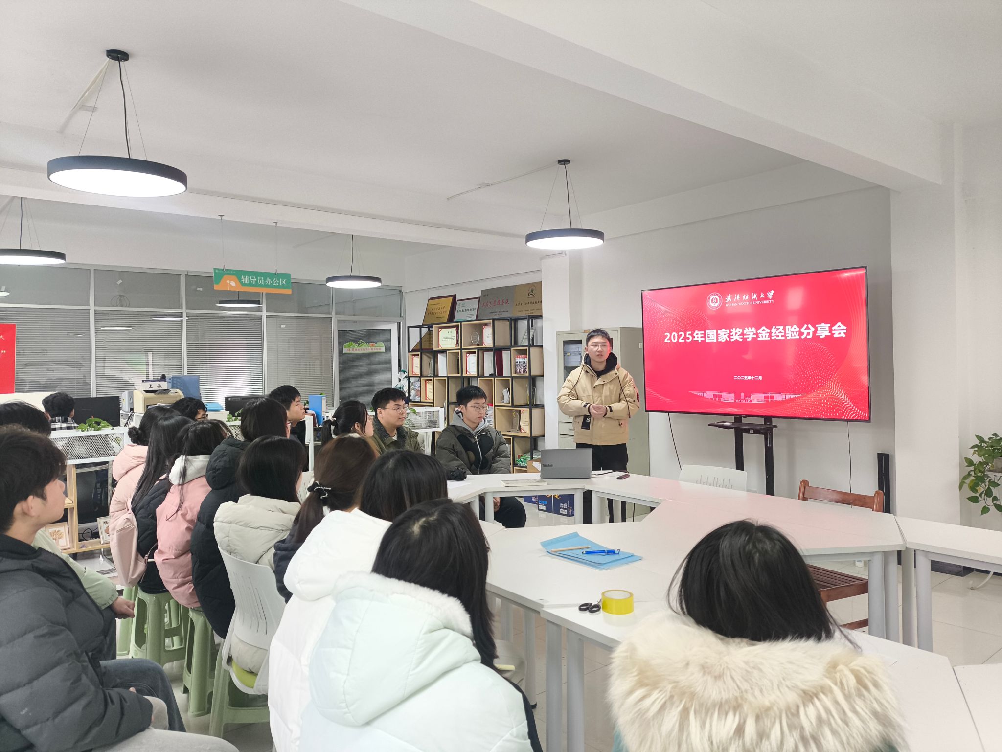 12月23日下午,色播app在10栋绿芽创新实践一站式学生社区举办国家奖学金经验分享会。分享会由色播app辅导员张宇航老师主持,2022、2023、2024级同学参加。