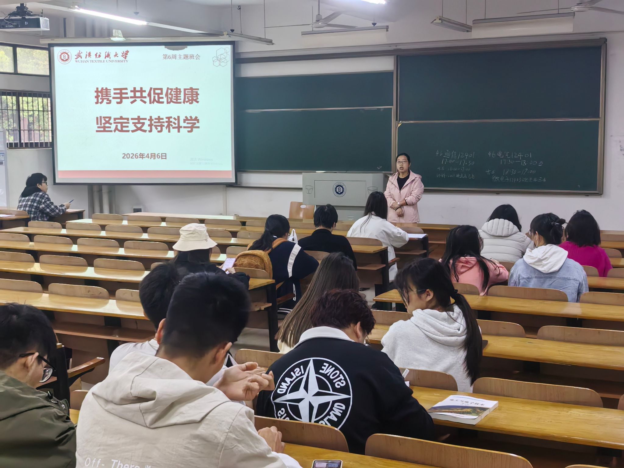 为普及科学健康理念,引导学生树立健康生活方式,4月6日,色播app在崇礼楼组织全体研究生与本科生各年级开展“携手共促健康 坚定支持科学”晚点名班会。