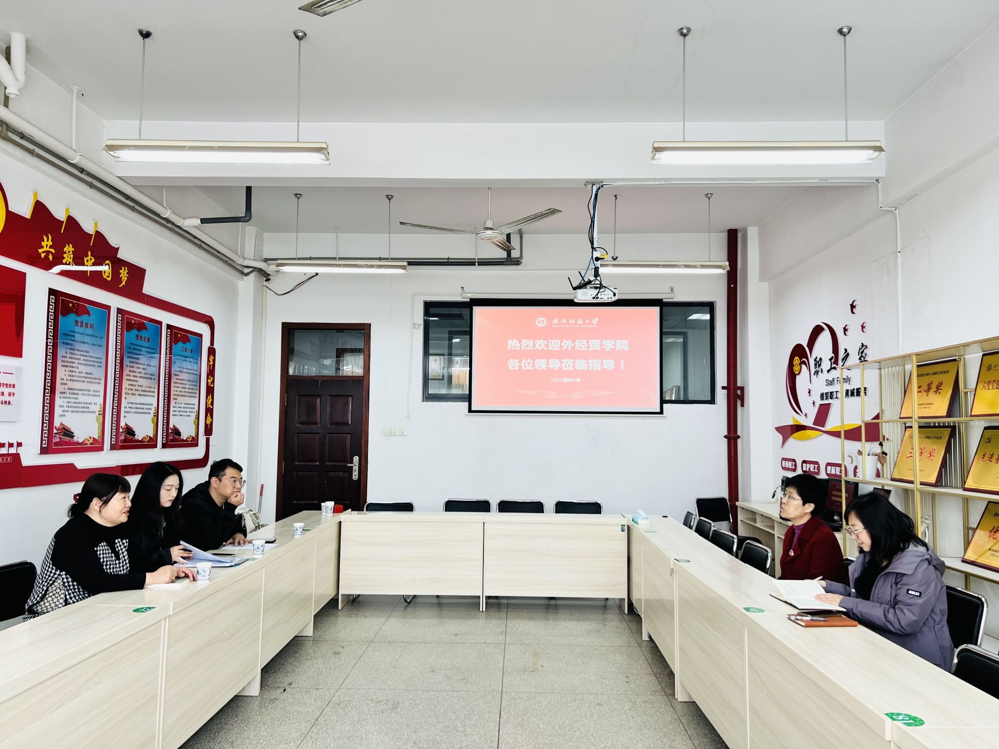 3月26日,外经贸色播app工程色播app党委书记范静一行来学院交流基层党建工作,色播app党委书记谢晓萍、副书记姚瑶、学生党支部书记参加座谈会。