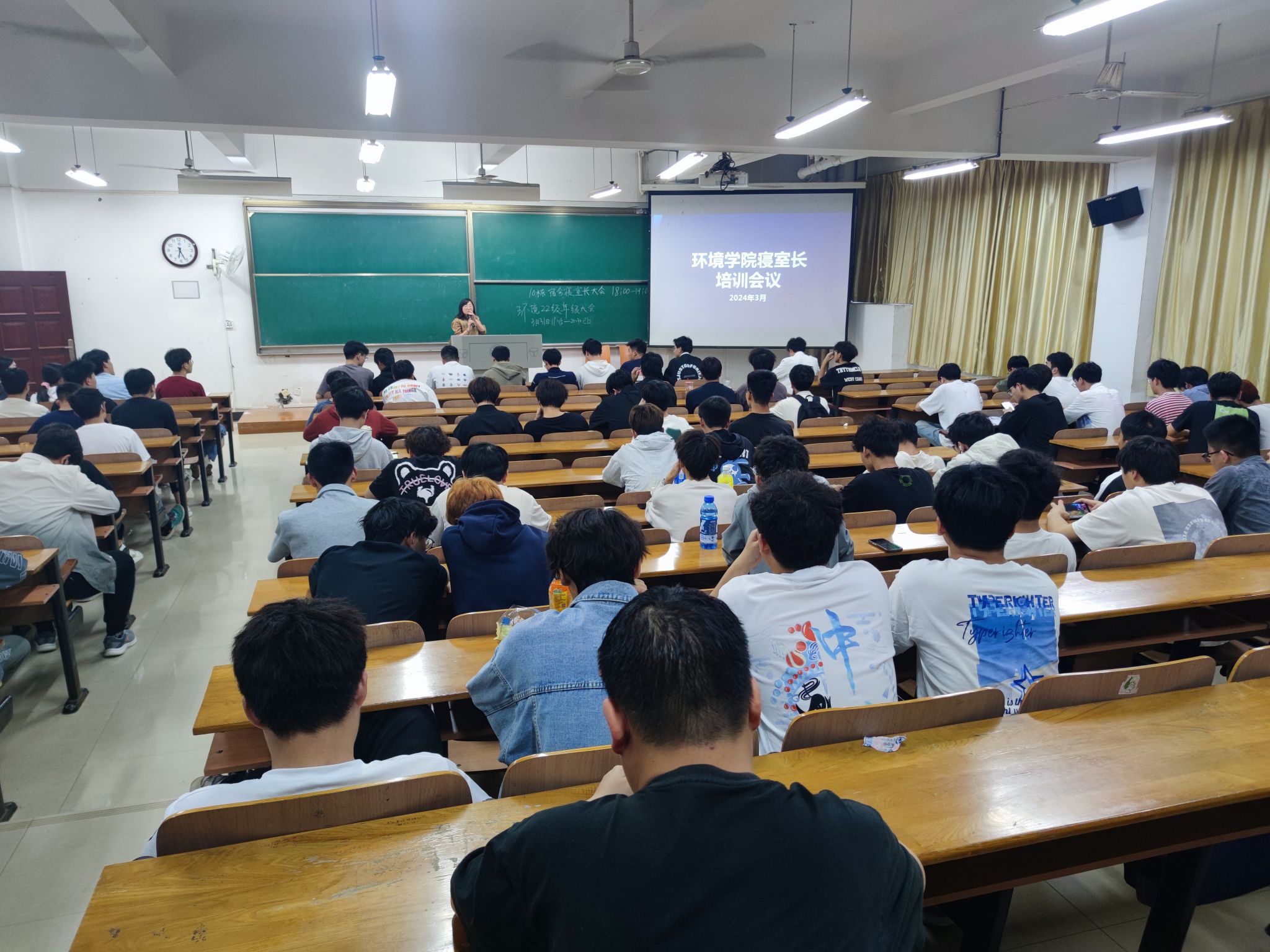 为规范学生宿舍管理,引导同学们在“一站式”服务驿站做好自我管理、自我服务,营造安全、卫生、舒适的住宿环境和以社区为家的良好氛围,3月31日晚,色播app在崇礼楼113教室开展了主题为“共享共建共治,宿舍安全有你有我”的寝室长培训会暨一站式自治管理委员大会,会议由“绿芽”创新实践学生社区驿站自管会指导老师郁星主持,色播app党委副书记姚瑶、十栋驻楼辅导员张宇航及10栋学生社区自管委员会成员、寝室长参加会议。